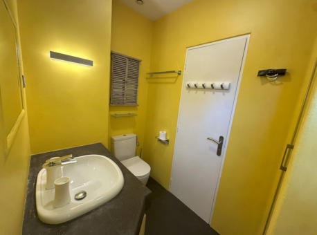 BEDROOM 2This bedroom is next door to the main bedroom. A large, comfortable and modern double bed with one single matrace provides you with comfort for one or two, giving you the opportunity to rest and relax … This room comes with its own terrace; ideal to read a book, or have a glas of wine or fresh juice in the evening sunshine. But, of course, at all other times of the day, too.The large wadrobe is french style (in the wall), providing space for your clothes an luggage. A dressing table with mirror supports your needs for preparing yourself for the day, or the evening out.En-suite bathroom with rain shower, sink and toilet provide for the privacy and convenience you look for in such a holiday.