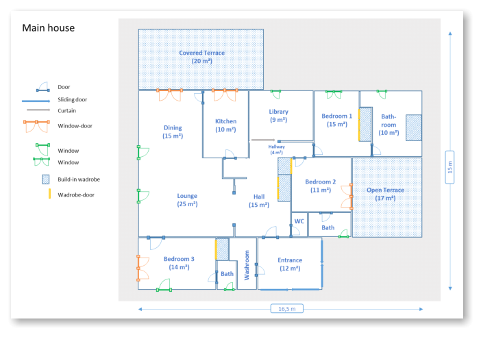 Main house offers 150 m², sleeps up to 8 people (10 with use of convertible sofas in lounge)