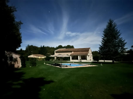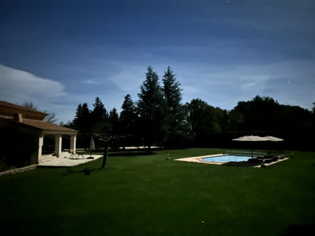 ILLUMINATIONSun and blue sky are the icons of the provence. Yellow and blue are the colors associated with the region.But the night offers spectacular ways to highlight special features. And to find new ways to relax, and enjoy a nice drink.The boule area is also illuminated, so you can enjoy a game at night.And not only that - the black sky is overfull of stars, and you will be able to spot star formations you normally only know from books and pictures.Some photos are taken at full moon - also a special illumination as it is difficult to distinguish between day and night.Enjoy to lay down in the gras in the night, and admire the stars on the sky! Or do the same, leaning back on the comfortable resting chairs…