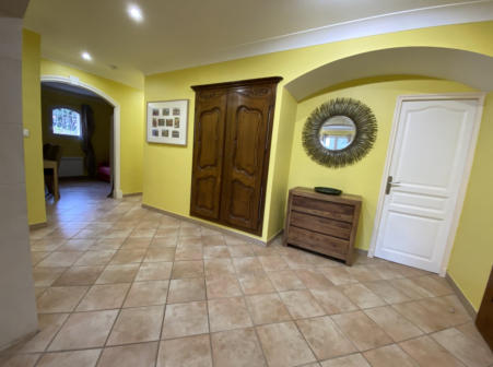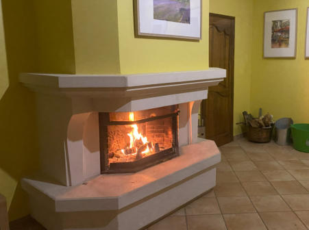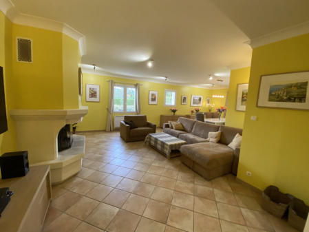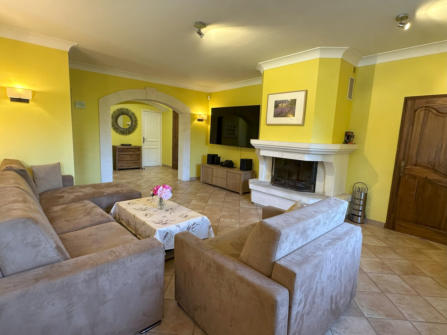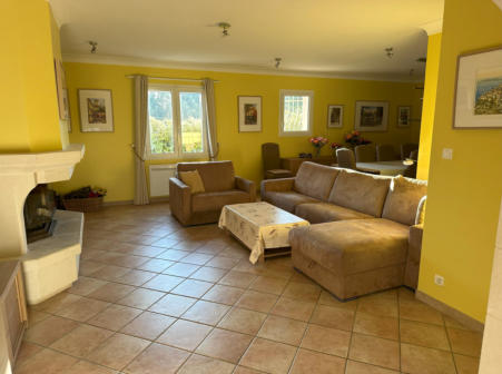 LOUNGEModern ambience in a traditional provencal environment – the design of the house extends into its interior. All furniture is made from french oak in modern french design. Together with the original artworks of local painter Pascal Maucourant this greets your eyes and hearts, providing the pleasure and ambience you deserve!A comfortable couch with integrated “chaise-longue” and a large arm chair invite to relax, talk, have a drink, or enjoy TV, a movie, or just listen to music. In winter the chimney provides warmth and adds to the cosiness … with wood from our own forest ;-)If extra space is needed, couch and arm chair surprise you with having a convertible bed inside!