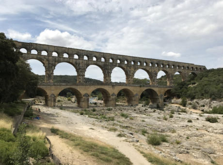 PONT DU GARD West of Avignon, the famous „bridge“ over the river gardon, once an important element in the ancient roman water transport chain. Picturesquely situated across the river, invites to stroll around, have a picknick by the beaches, swimming or paddling. Looks different every time depending on the water level of the river. Nice snacks and views at resto „Les Terrasses“ Tip: Go to the upstream side to discover the nice beach, and have a swim.