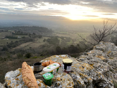 VERNEGUESAbout 20 min from our house you will find one of the most spectacular viewpoints in the area. Behind the old castle is a large plateau, ideal for a MTB tour. Remanents of an old windmill with an area map. Vernegues used to be the capital of the district. After an earthquake only ruins are left. Best place for sunrises. The small restaurant „Le Repaire“next to the castle offers great Crêpes.