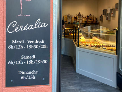 CEREALIAClosest to our house, directly at the village square. Great selection of bread and pastries.Try the baguettes „Olive“ and „Coeur de Lin“ - just wonderful. Also specialties in Mais and other grains.Wonderful, changing assortment of small cakes - absolutely delicious !Opening times:Tuesday to Saturday6:30 - 13:00, 15:30 - 19:00 Sunday:6:30 - 13:00Closed on MONDAY6 Place GambettaTel 0442 57 21 15