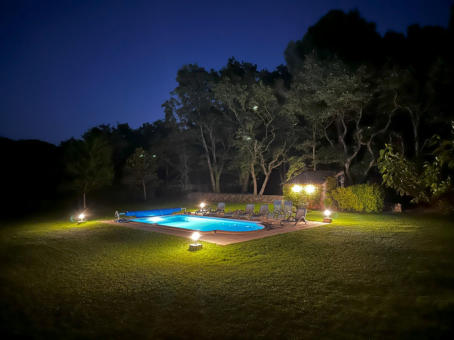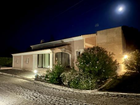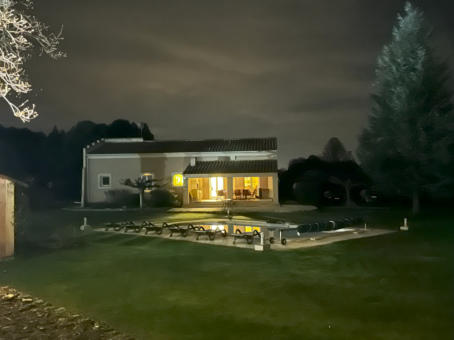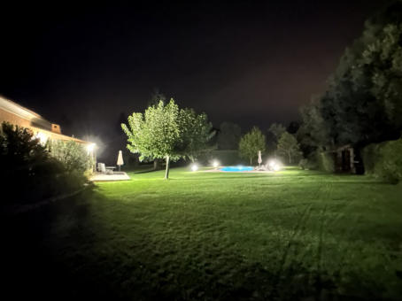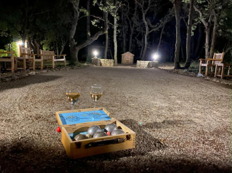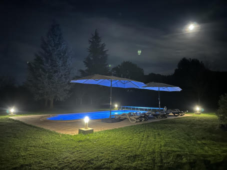 ILLUMINATIONSun and blue sky are the icons of the provence. Yellow and blue are the colors associated with the region.But the night offers spectacular ways to highlight special features. And to find new ways to relax, and enjoy a nice drink.The boule area is also illuminated, so you can enjoy a game at night.And not only that - the black sky is overfull of stars, and you will be able to spot star formations you normally only know from books and pictures.Some photos are taken at full moon - also a special illumination as it is difficult to distinguish between day and night.Enjoy to lay down in the gras in the night, and admire the stars on the sky! Or do the same, leaning back on the comfortable resting chairs…