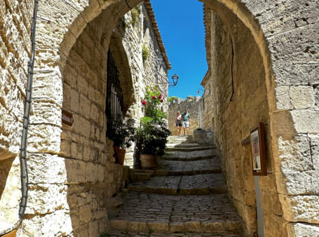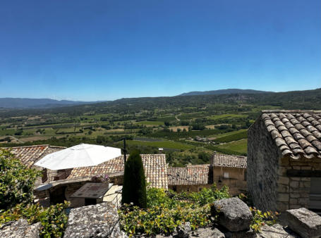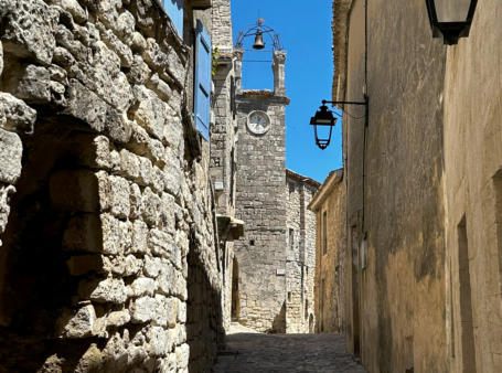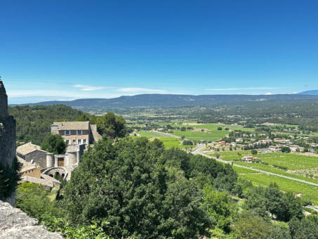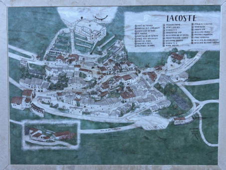 LACOSTEVery small, pretty village on a hillside with a large castle. Slightly mysterious village as the castle belonged to the Marquis de Sade writing his books here, and in modern times to Pierre Cardin.Very mediaval streets and houses, and magnificent views. Café de France invites with a wonderful view for a rest on its terrace. Click here to get a map.