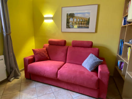 LIBRARYThe library provides a nice place of tranquility to read and study about the area,, and provide your tours out.Or just to calm down after a long tour of sightseeing, perusing the literature you have just bought, or which you find on the bookshelf.Or look at the pictures you have taken during the day…Besides being such a welcoming spot, it also provides the opportunity to be turned into a bedroom on a very comfortable, queen-size convertible couch. Ideal as an extra bedroom, but even more ideal for little kids as it does not provide amenities, therefore no chance for the kids to create a big wet mess, or other unwanted surprises for the parents!