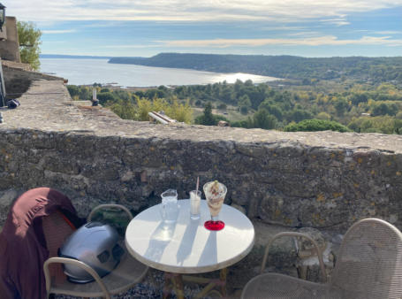 MIRAMAS-LE-VIEUXVery mediaval village on top of a cliff, only for pedestrians (large parking at the bottom). Wonderful views, and two of the best ice cafés in the region: Le Quillé and Le Misto (is a restaurant as well), both offering great views from their terraces. Strolling around in this old preserved village is beautiful.Click here to get a map.