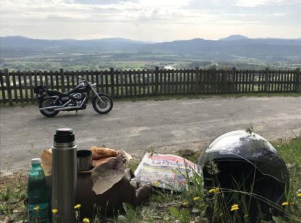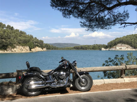 MOTORBIKE TOURS 3One of my favorite tours takes you to a special place called „La Quille“. Very secluded you will find a chapel, a picknick ground wich benches and tables. And with a little hike you can get to the very top and enjoy a magnificient view. I call this view „the promised land“ as it looks really amazing with the blend of a winding canal, fields and little forests, and Mont Saint Victoire in the back.On the way you can take a stop at Chateau LaCoste (the vinery) to admire their artwork, wine, or take a meal. On your way back you pass a little lake which is a key element of the fresh water supply of Marseille, which runs from there through a set of canals, tunnels, and bridges all the way to Palais Longchamps in Marseille, where this open pipeline ends.