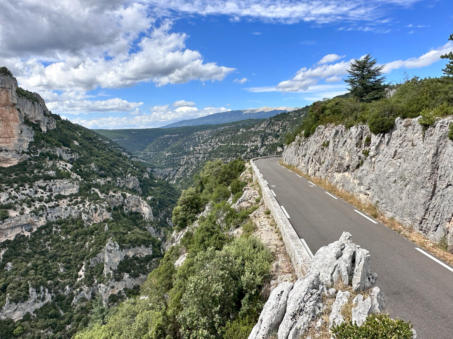 GORGES DE LANESQUEThis is a small version of the Gorges du Verdon, situated in the south of Mont Ventoux, carved by the river Nesque into the stones.Coming from the top of Mt. Ventoux direction Sault, this offers a pretty way back with exciting outlooks along the winding road.