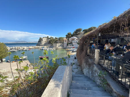 NIOLONPretty small village by the sea, between Marseille and Carry-le-Rouet. Nice small yacht harbor, pretty views on Marseille, some restaurants offering open terraces with nice views over harbor and sea.Just before the village, on the left hand side before the parking, you can climb on a little mountain which offers spectacular views on the villages and the train bridge.Click here to get a map.